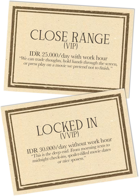 Note: for Close Range and Locked In, free PDA + choose 1 paid service (Sposess/game date/movie date).
